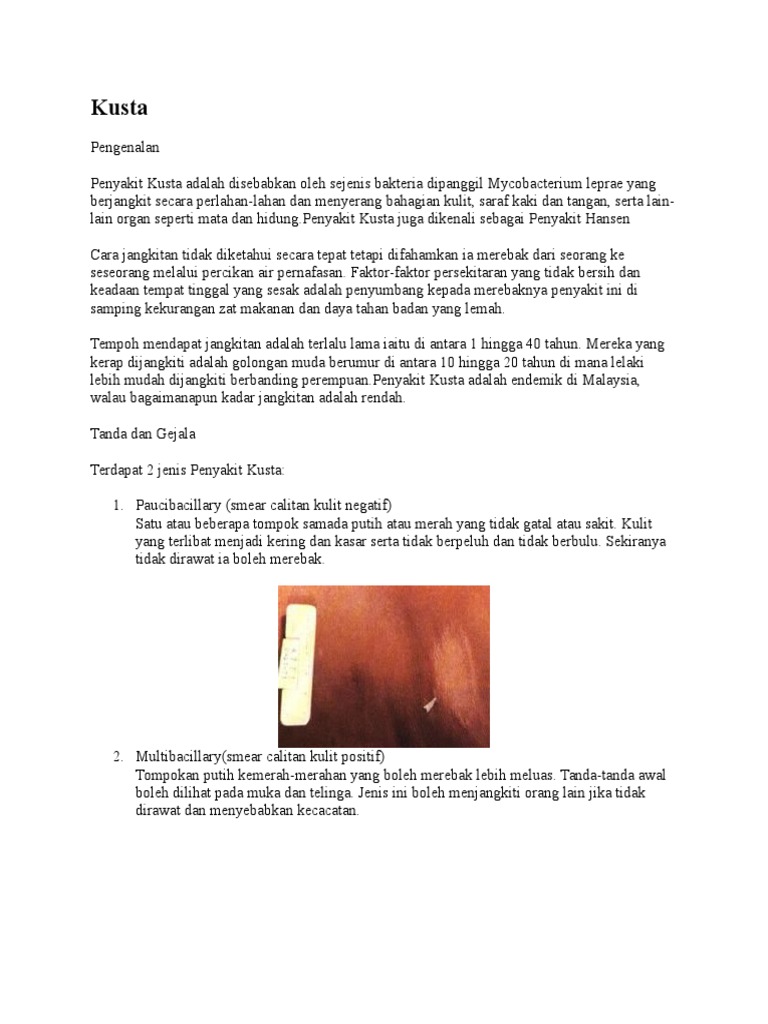 Penyakit Kulit - Kusta Boleh Dirawat - Info Sihat Bahagian