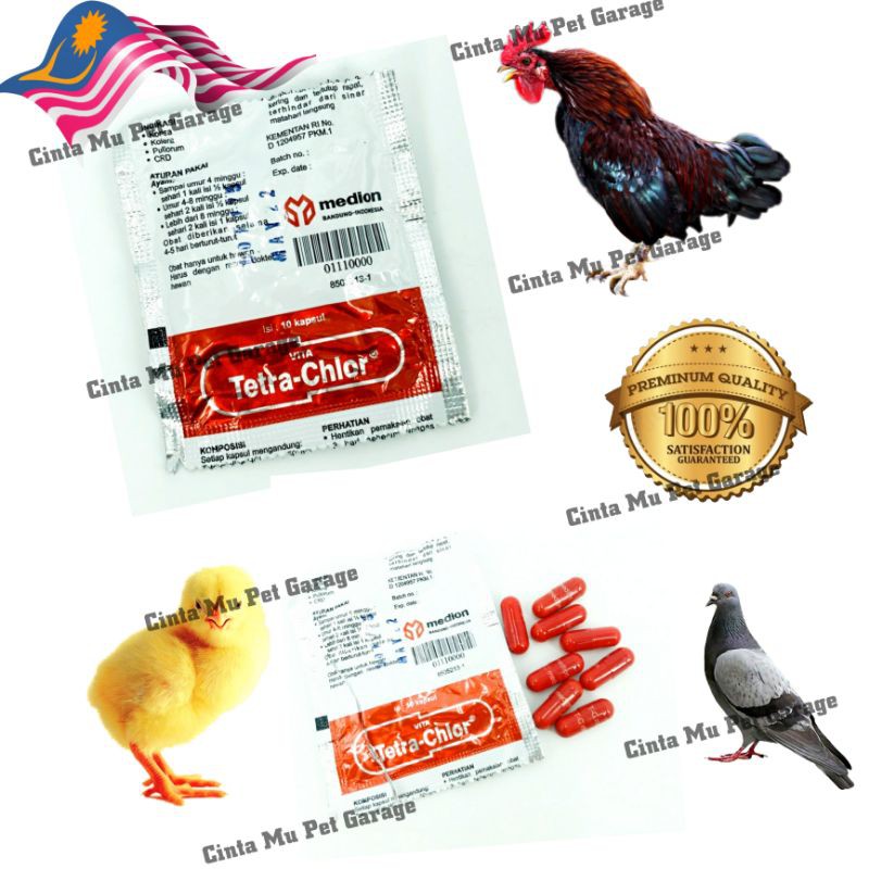 Tetra Chior ubat burung dan ayam Tetra chior bid and chicken medicine 1packet 10capsules